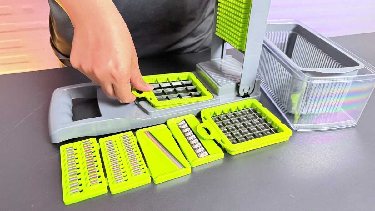 - 8 kiểu cắt trong một bộ: linh hoạt thay lưỡi để làm nhiều dạng topping, từ lát mỏng đến sợi.