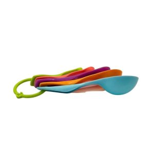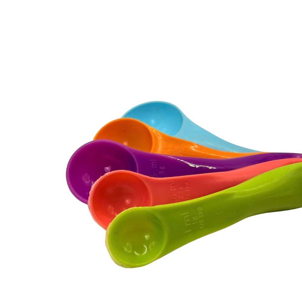 Bộ gồm 5 kích thước: 1ml, 2.5ml, 5ml, 7.5ml, 15ml. Mỗi thìa in rõ đơn vị ml/gram, giúp kiểm soát định lượng chính xác.
