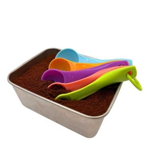 Mỗi thìa có màu riêng, dễ nhận diện dung tích khi thao tác nhanh. Đây là điểm cộng cho barista và bếp cần tiết kiệm thời gian.