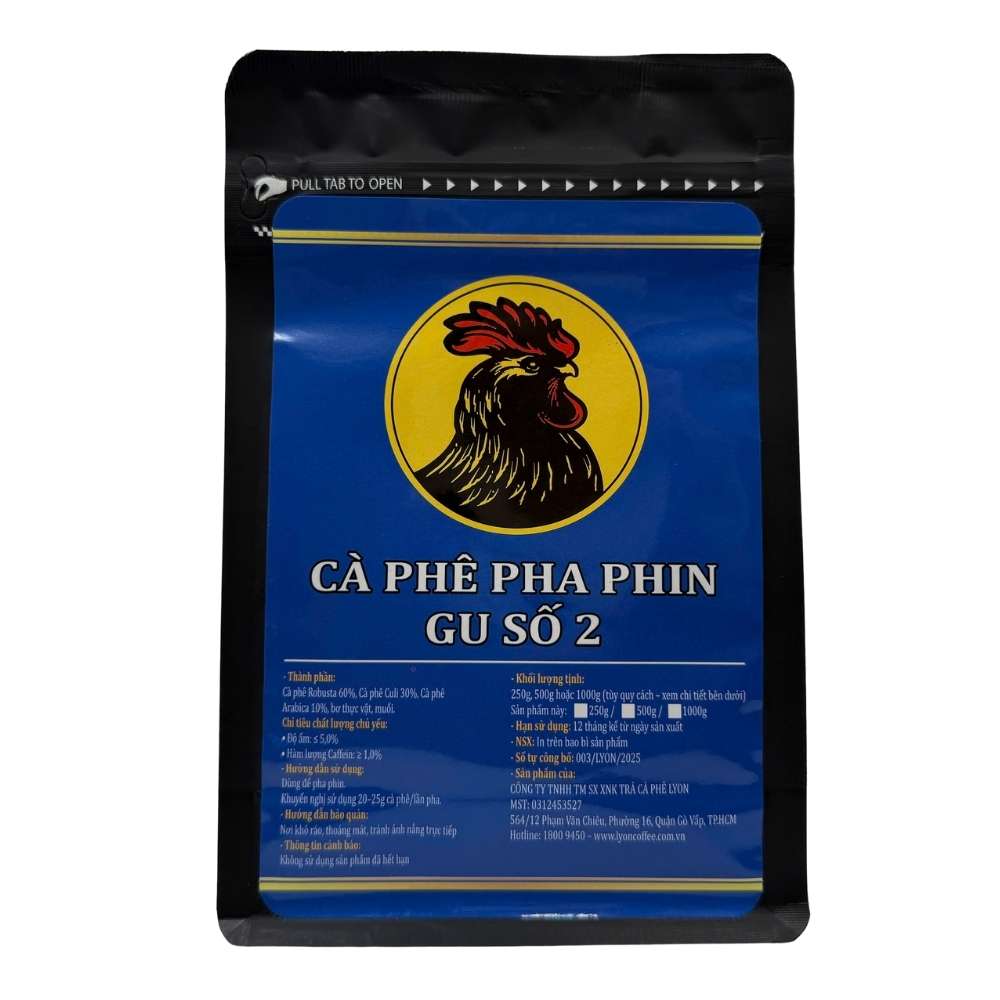 Cà phê hạt pha phin gu số 2 là sự phối trộn giữa Robusta, Culi (Peaberry) và Arabica, được rang ở mức Medium-Dark. Loại cà phê này cho hương thơm dịu, vị đắng vừa, có béo, không chua, phù hợp với người yêu gu truyền thống nhưng muốn cân bằng và dễ uống hơn gu đậm.