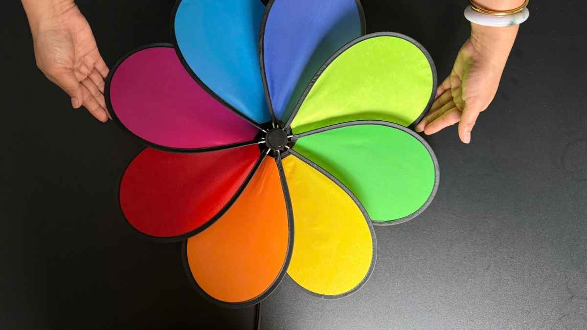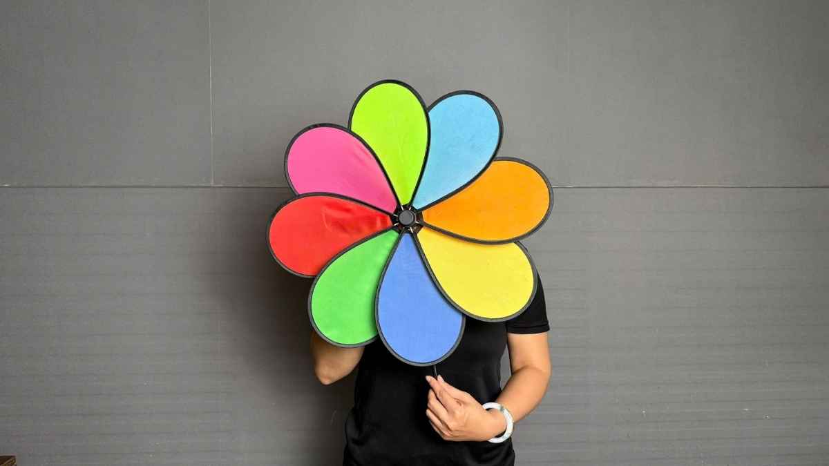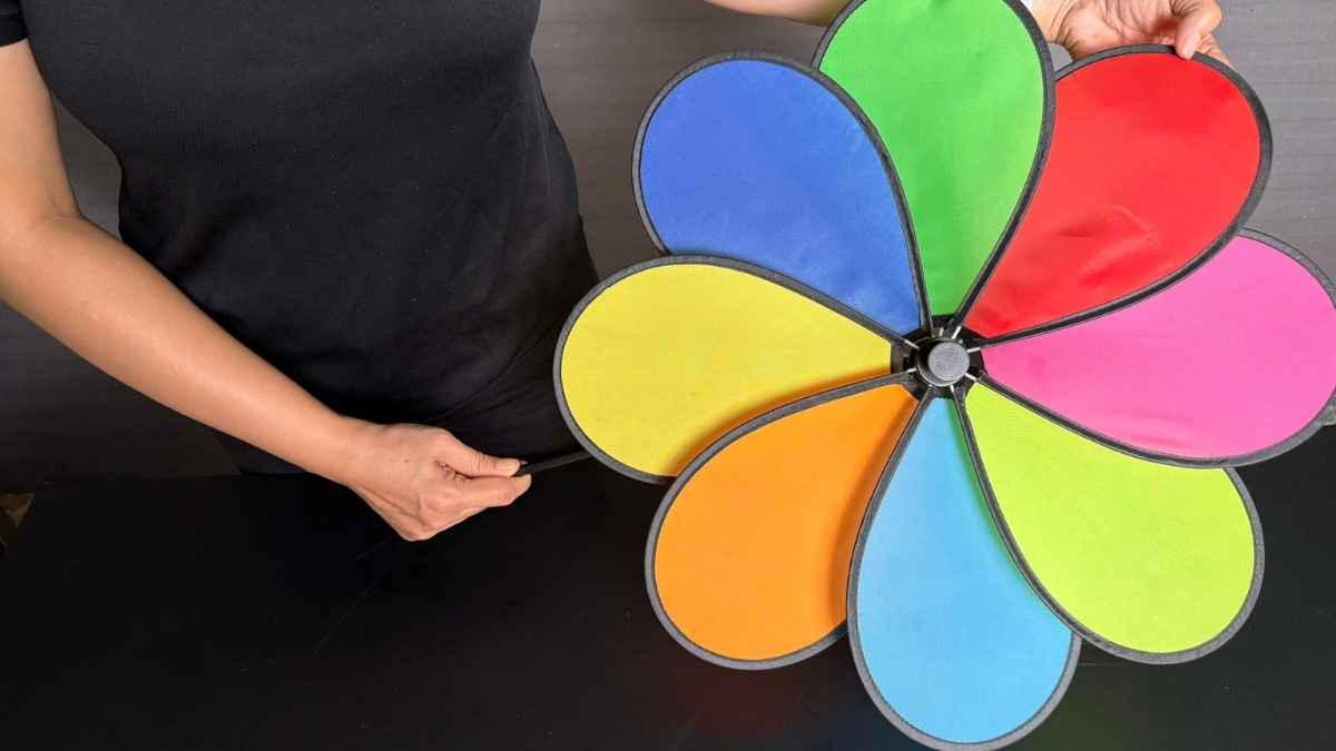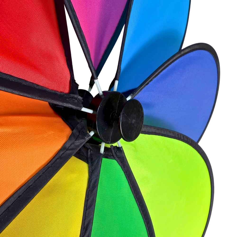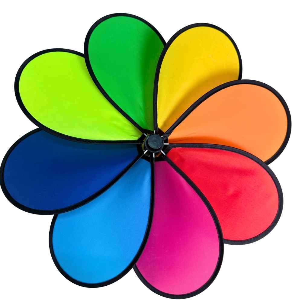 Với 8 cánh bằng vải rực rỡ, chong chóng tạo hiệu ứng chuyển động cuốn hút. So với chong chóng giấy, mẫu nhựa – vải này bền và an toàn hơn khi dùng ngoài trời.