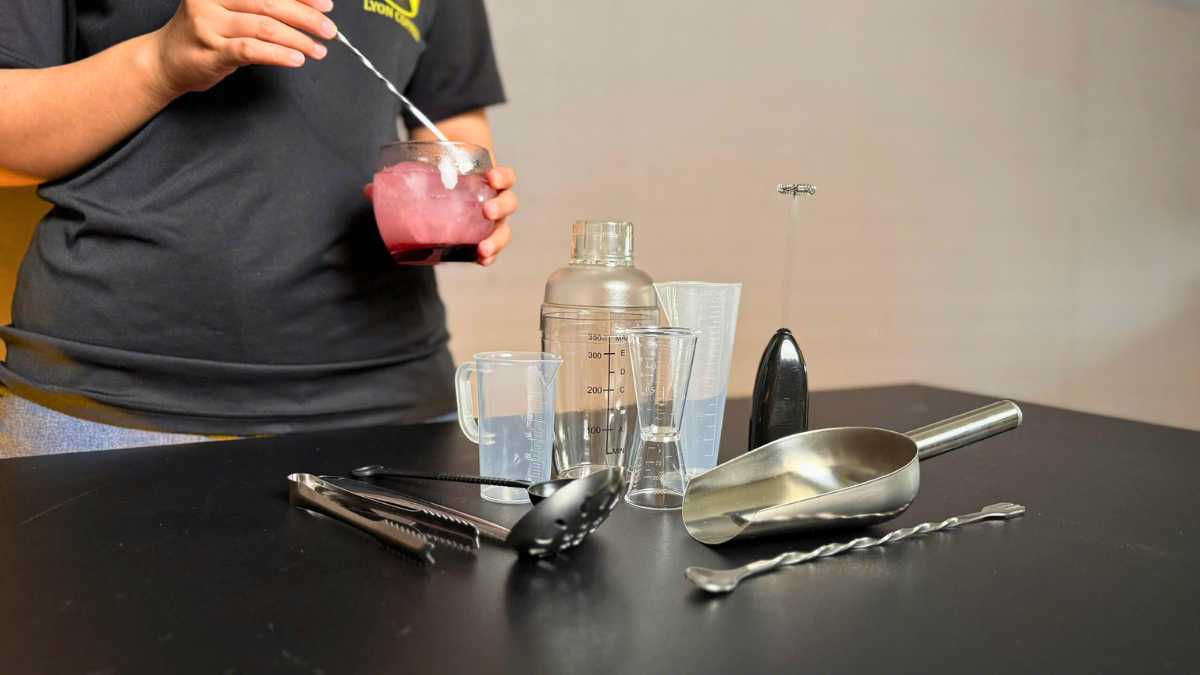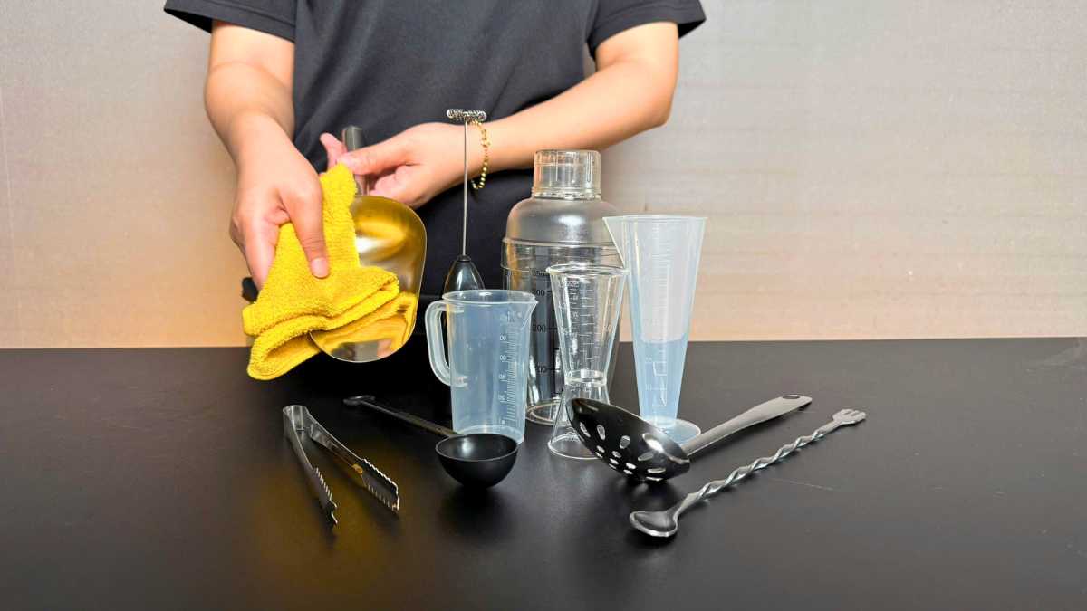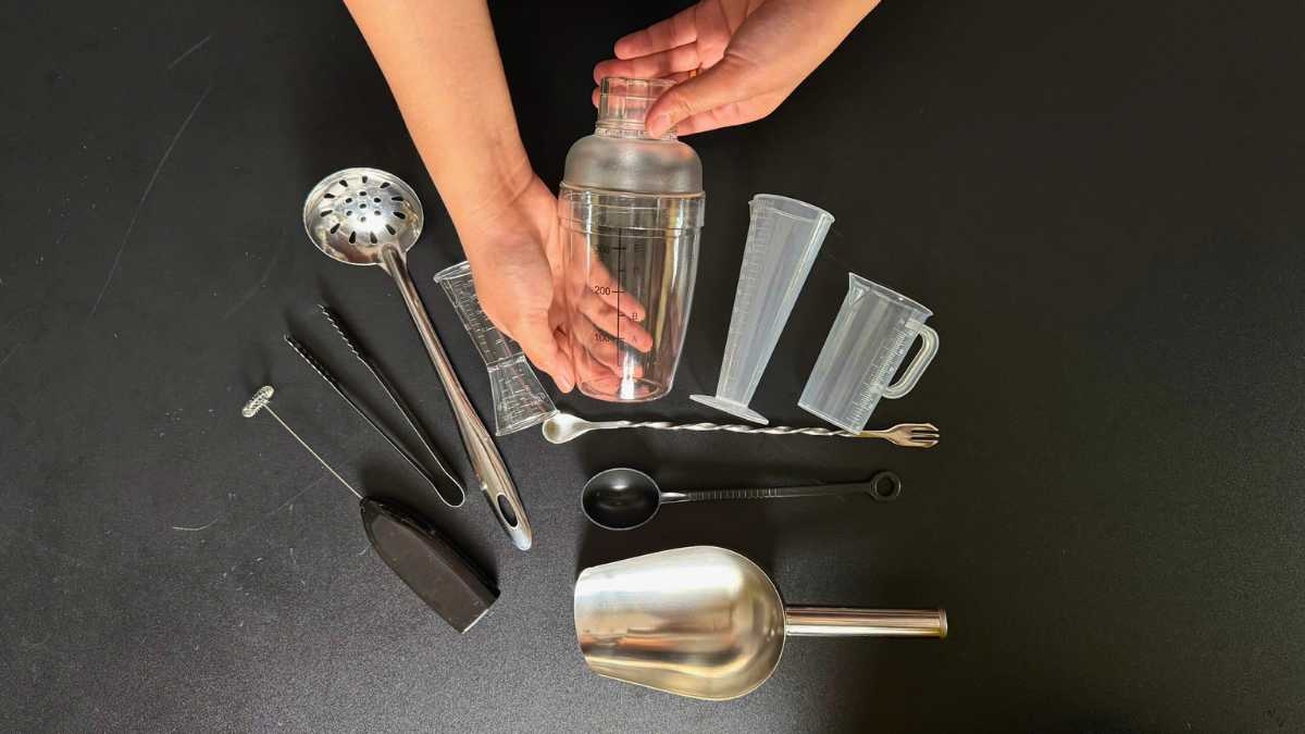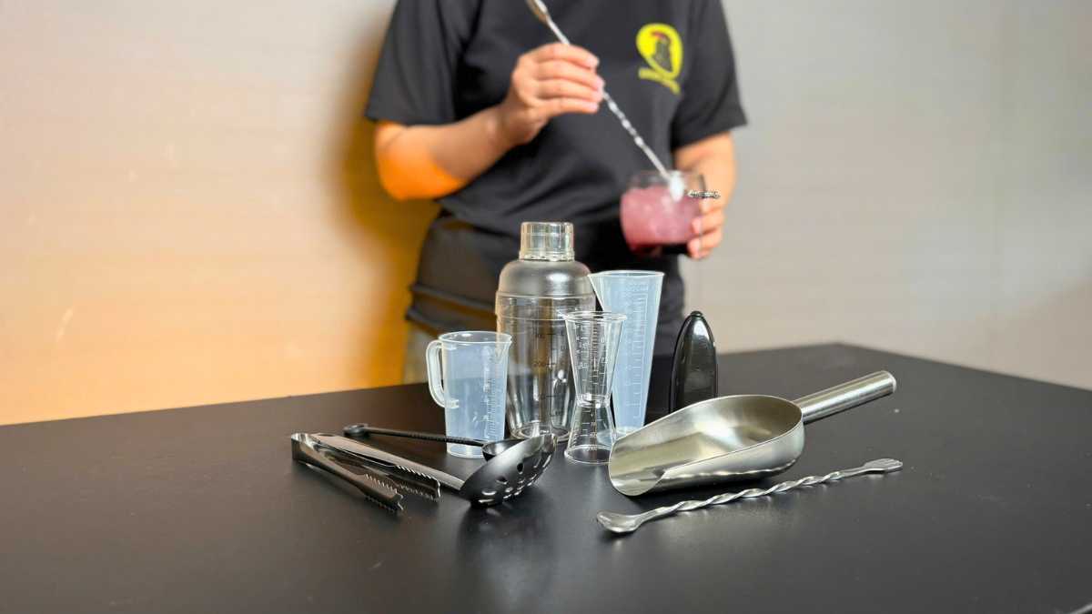 Shaker nhựa PP có vạch ml rõ ràng, zigger định lượng 20–40ml chính xác, phễu và ly đong giúp tránh tràn. Các món đều nhỏ gọn, dễ bố trí quầy bar hẹp. Điều này hỗ trợ thao tác nhanh hơn so với dụng cụ truyền thống.