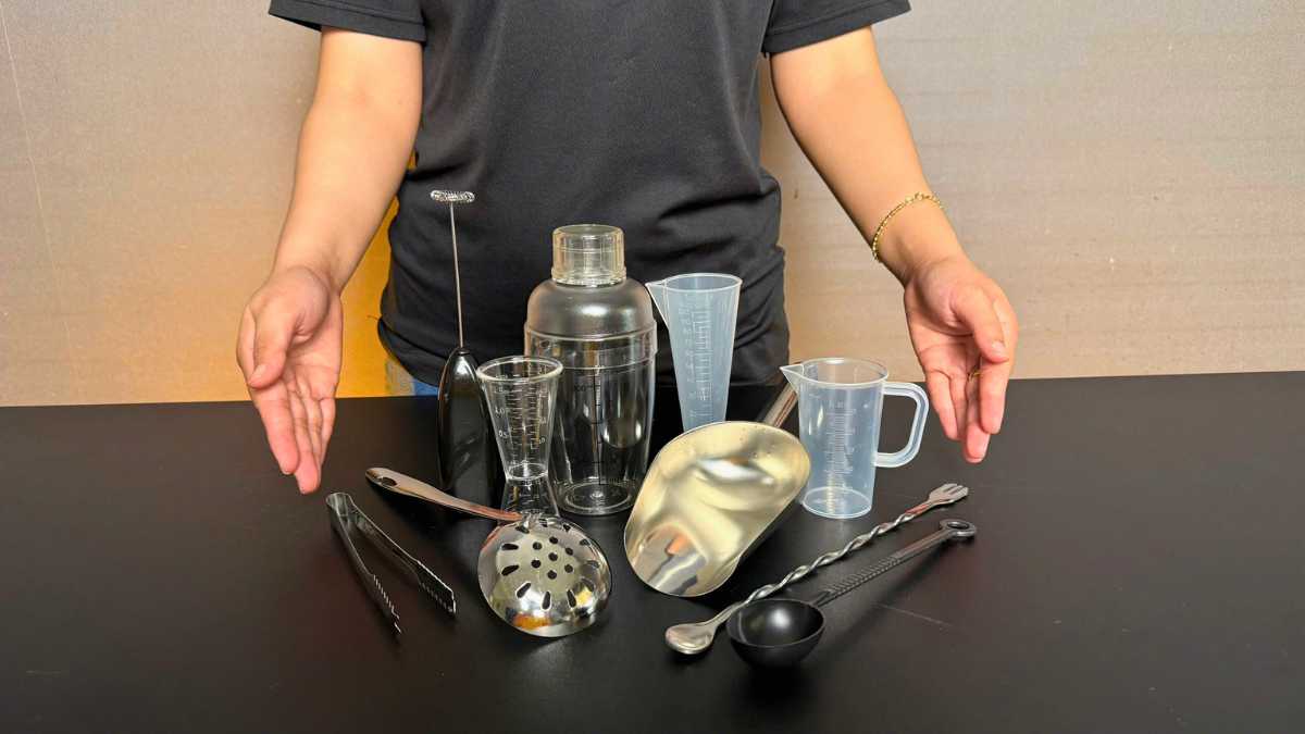 Combo gồm 10 dụng cụ pha chế cơ bản từ shaker, thìa bar đến máy đánh bọt pin. Barista có thể pha cocktail, soda, cà phê đá xay hay latte ngay, không thiếu món nào. So với mua lẻ từng sản phẩm, combo này tối ưu thời gian và chi phí.