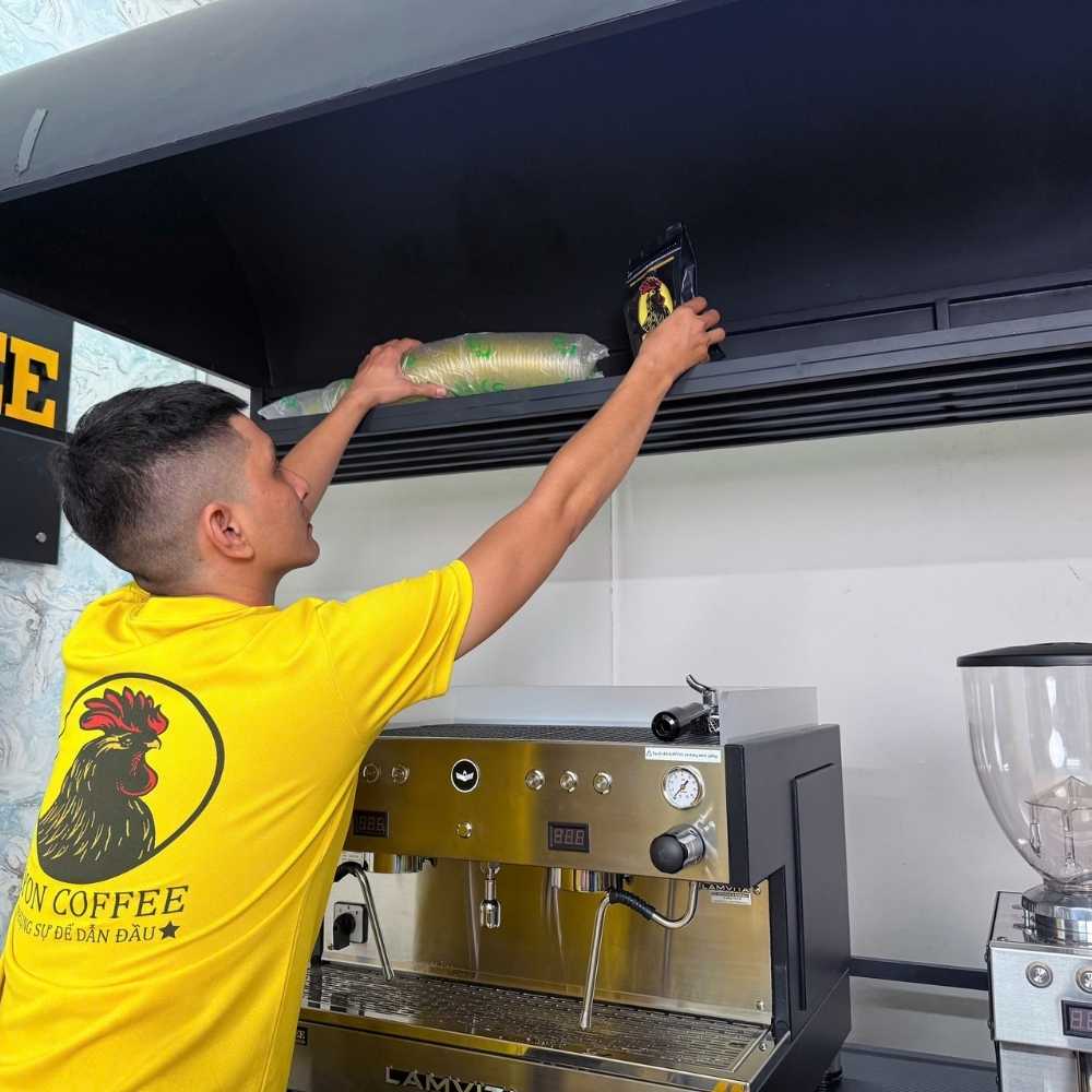 “Combo 85 triệu vận hành ổn định, năng suất cao, không lo kẹt đơn giờ cao điểm. Mái vòm lớn giúp khách dễ nhận diện thương hiệu.” — Barista Thanh Tú – Lyon Coffee Partner 2025