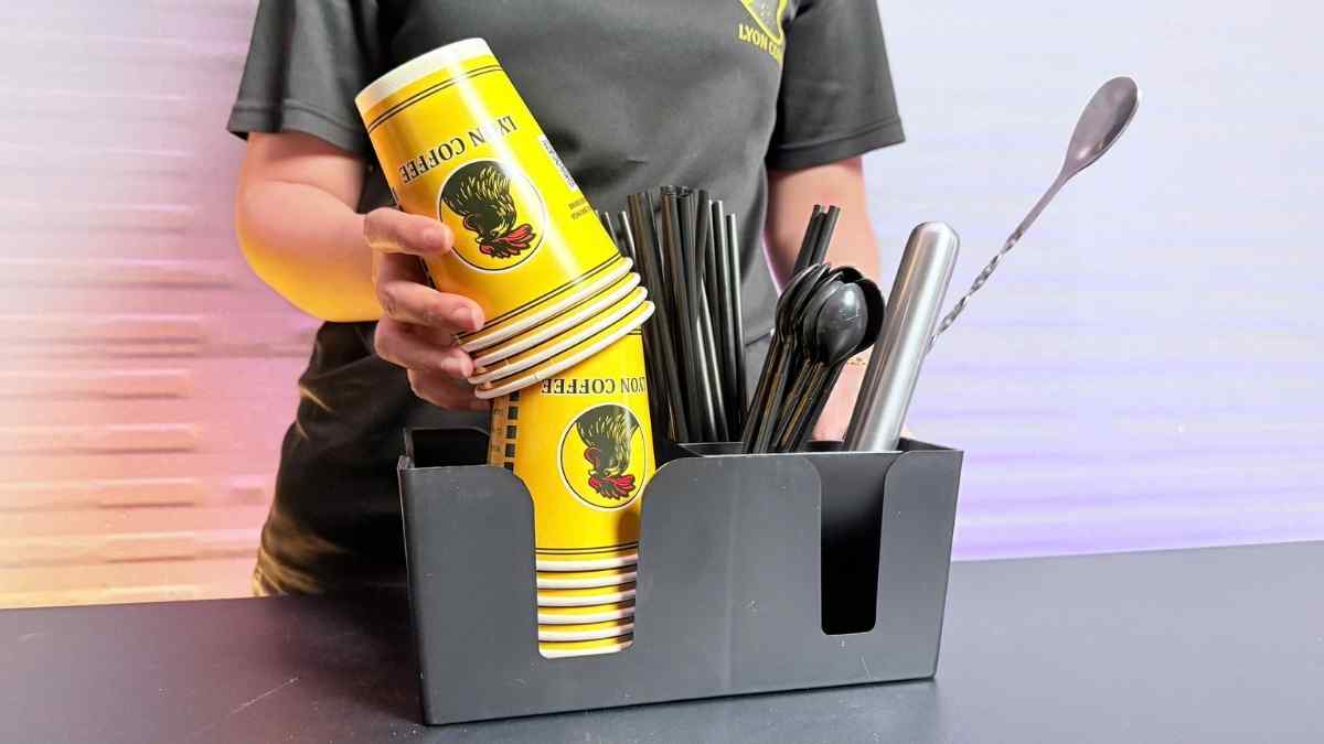 Theo phản hồi từ các barista Lyon Coffee, khay đựng ống hút 6 ngăn hiệu quả nhất khi bạn “quy ước” từng ngăn theo đúng quy trình ra món. Khi đông khách, tay chỉ cần đưa đúng vị trí nên tốc độ ra món ổn định hơn.