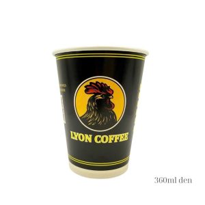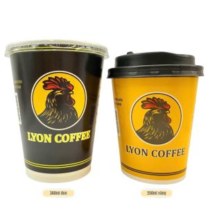 Ly có màu vàng và đen đặc trưng thương hiệu Lyon Coffee, kết hợp nắp bằng tiện lợi. So với ly nhựa PET, ly giấy mang lại cảm giác thân thiện môi trường hơn.