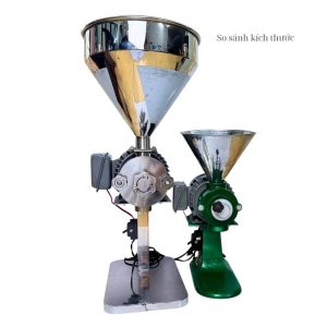 - Trong khi máy xay cà phê công nghiệp inox 1HP mạnh hơn với 40–50 kg/giờ.