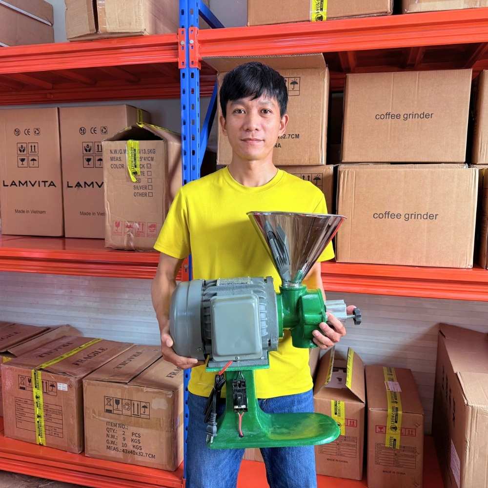 - Công suất này giúp xưởng rang và cơ sở đóng gói xử lý nhanh đơn hàng lớn. Với quán, phù hợp xay phin số lượng lớn theo mẻ.