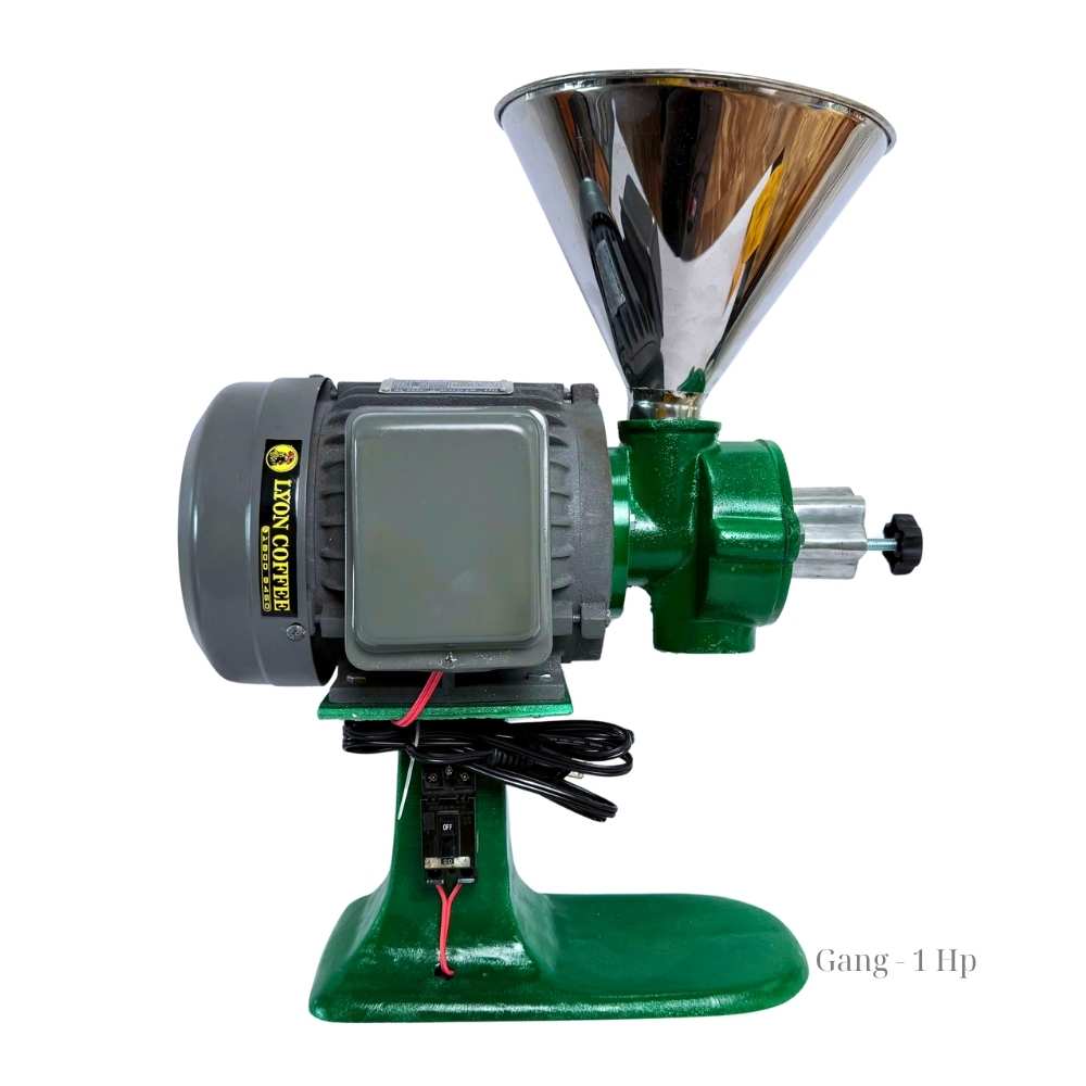 - Biến thể máy xay cà phê công nghiệp gang 1HP đạt hiệu suất 30–40 kg/giờ.