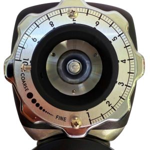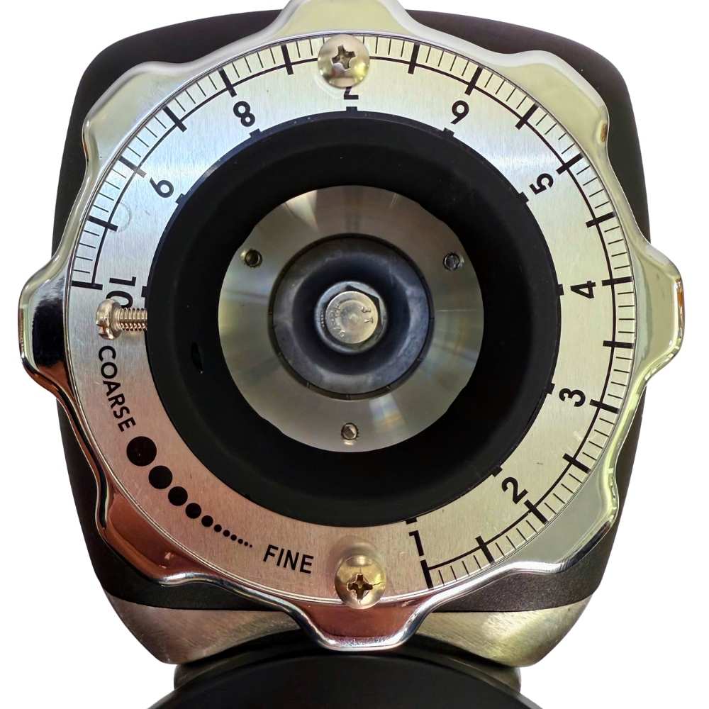 - Máy sử dụng núm xoay chỉnh độ mịn theo nấc, có thang số và hướng thô → mịn. Giúp barista dễ ghi nhớ cỡ xay và hạn chế lệch thiết lập.
