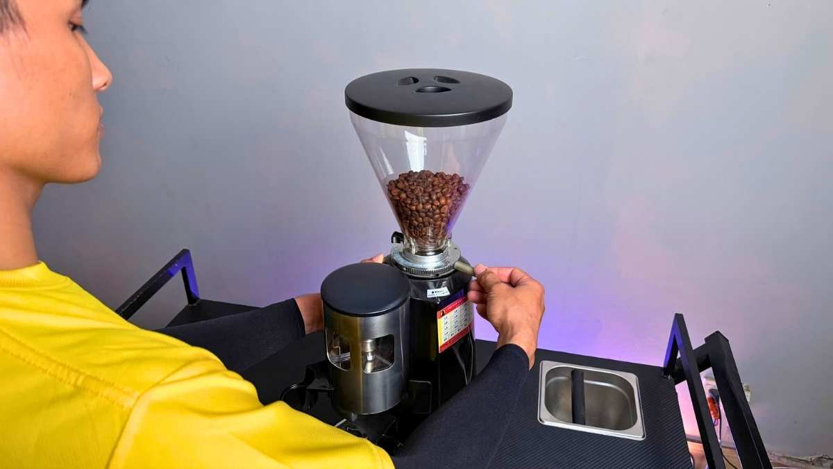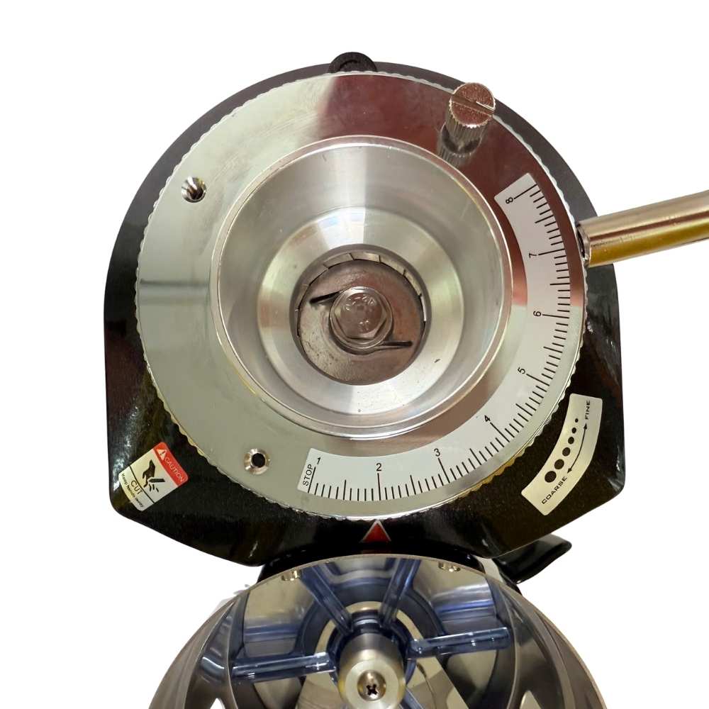 Máy sử dụng cần gạt thủ công để định lượng bột, đồng thời có nhiều mức điều chỉnh độ mịn. Điều này giúp barista linh hoạt trong từng công thức, từ espresso đến pha phin.