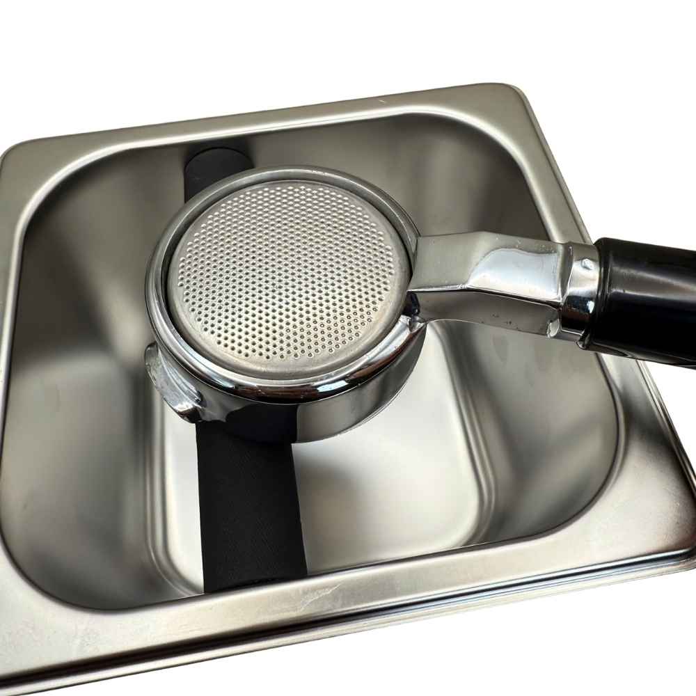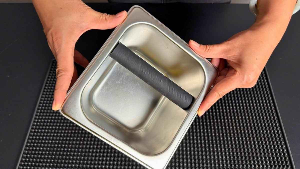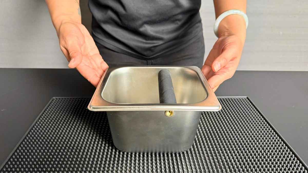 Đế chống trượt giúp hộp cố định trên mặt bàn, hạn chế rung lắc khi thao tác. So với knock box thường, bản inox an toàn và chắc chắn hơn nhiều.