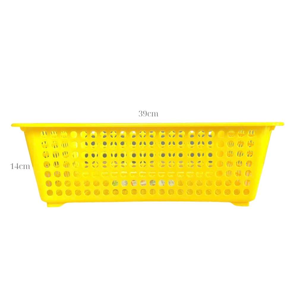 Rổ nhựa có kích thước 39 × 31 × 14cm vừa phải, phù hợp cho quán cà phê, văn phòng, gia đình. Có thể dùng để đựng trái cây, thực phẩm hoặc dụng cụ pha chế nhỏ gọn.