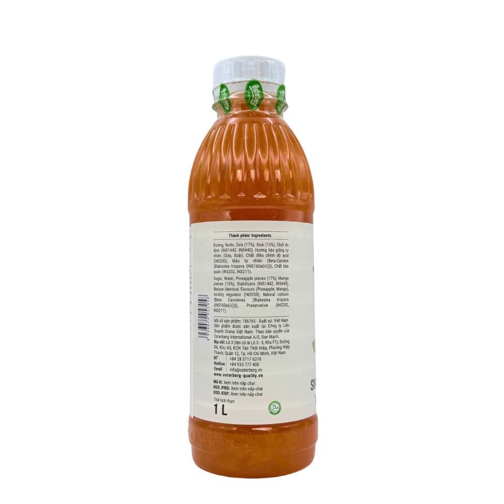 Sinh tố Osterberg Xoài Dứa là dòng sinh tố Osterberg cao cấp, kết hợp hài hòa giữa vị xoài chín ngọt béo và dứa vàng chua thanh. Được sản xuất theo tiêu chuẩn Châu Âu của Orana Đan Mạch, sản phẩm là nguyên liệu trái cây an toàn, đồng vị, lý tưởng cho các dòng smoothie, soda và trà trái cây nhiệt đới tại các quán cà phê, nhà hàng sang trọng.