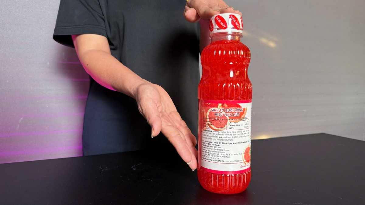 - Thành phần: Đường, nước, bưởi hồng (30%), chất ổn định (INS1442, INS440), chất điều chỉnh độ acid (INS330), hương liệu bưởi tự nhiên, chất bảo quản (INS202, INS211), chất chống oxy hóa (INS223), phẩm màu tổng hợp (INS129).