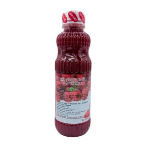 - Thành phần: Đường cát (35%), nước, phúc bồn tử (30%), chất ổn định (INS1442, INS440), chất điều chỉnh độ acid (INS330), hương liệu phúc bồn tử tổng hợp, chất bảo quản (INS202, INS211), phẩm màu tổng hợp (INS129), chất chống oxy hóa (INS223).