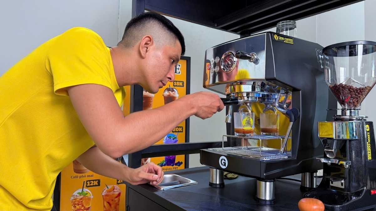- Truyền nước áp suất cao qua lớp bột, tạo crema mịn.