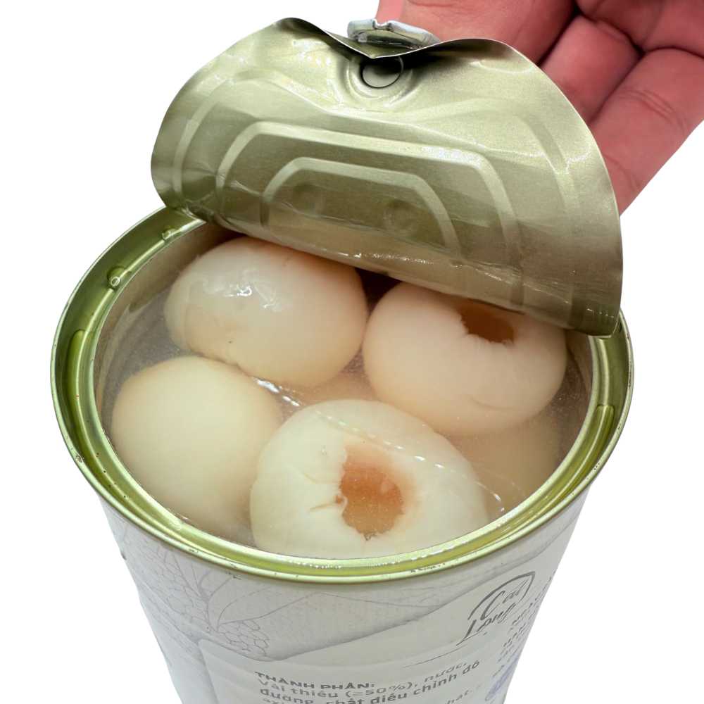 - Một lon vải 565g có 15 trái, kích thước đồng đều.